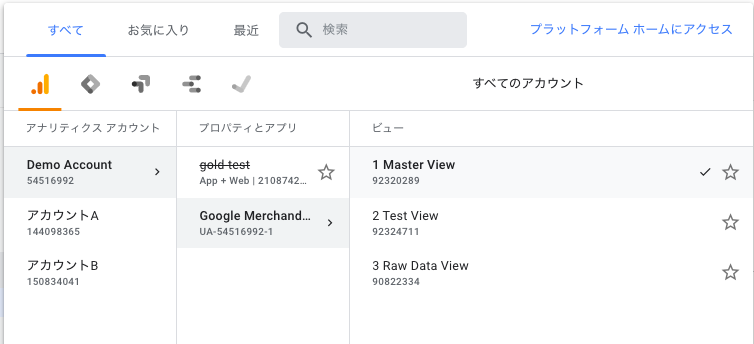 このリンクをクリックした瞬間に、お使いのGoogleアナリティクスに「デモアカウント」が追加されます!