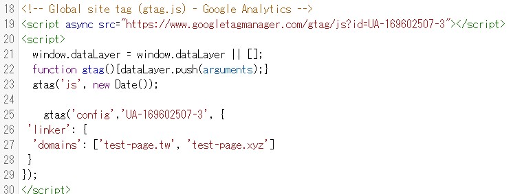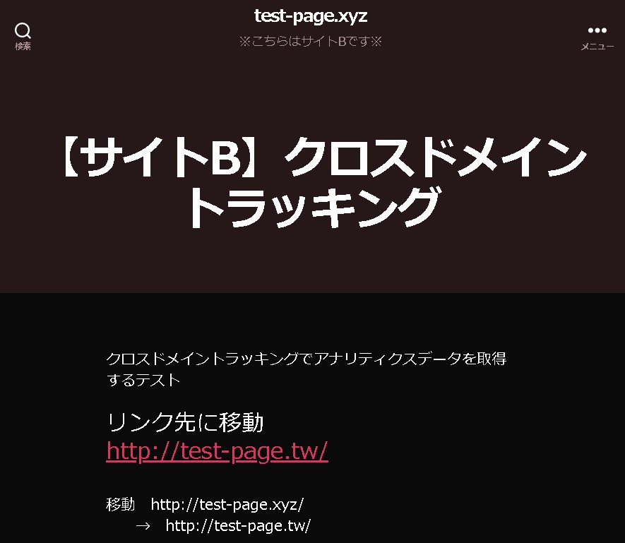 サイトB側にもクロスドメイントラッキング用のタグを入れます。