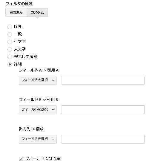フィルタの種類>カスタム>詳細