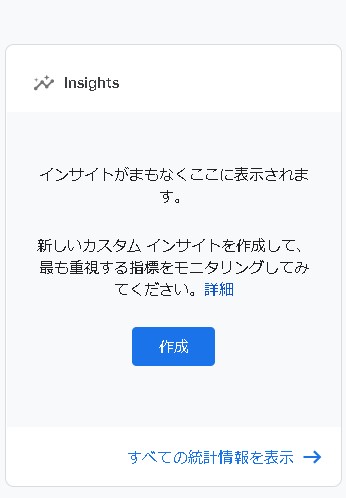 しばらく待つと、ダッシュボードにインサイトが表示されるようになります。