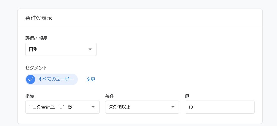 条件に、例えば「次の値以上」値に「10」「100」といった数値を入れます。
