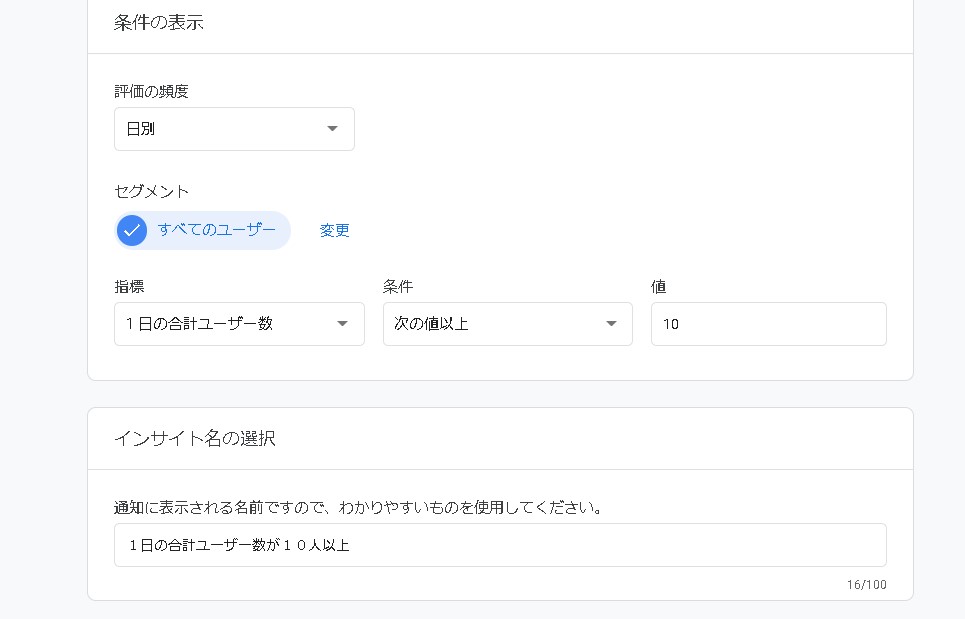 作成したインサイトの名称を設定します。