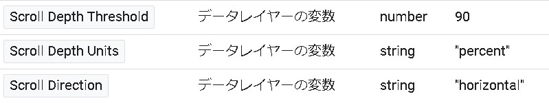 dataLayer.push({})内のevent:”gtm.scrollDepth”,という部分がスクロールイベントの値になっているようです。
