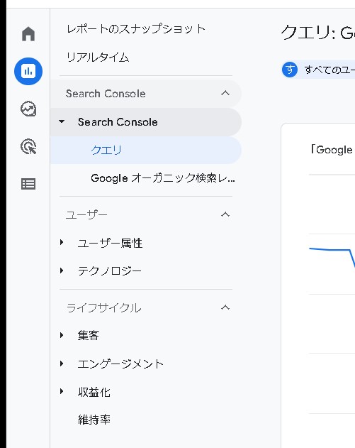(現時点で)オーガニック検索クエリを表示させるレポートが見当たりませんでした(もしかすると見つけられなかっただけもしれませんが…)