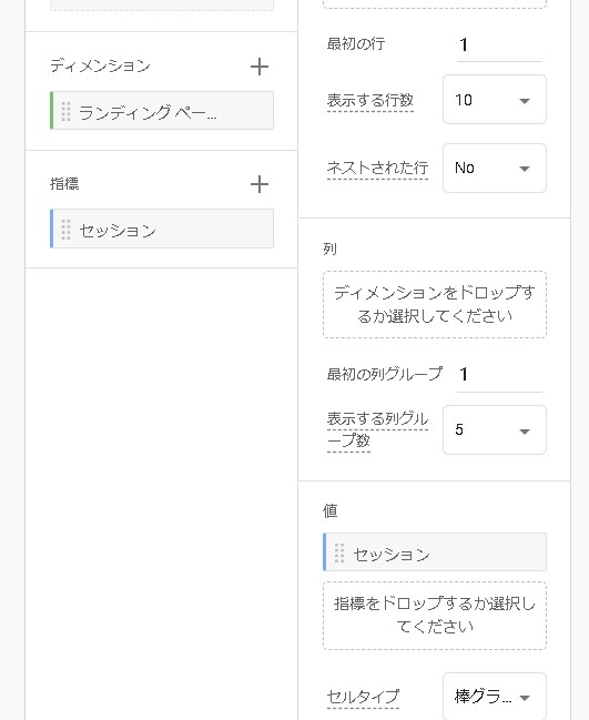 指標の方には「セッション」を追加します。追加したら値に「セッション」をセットします。