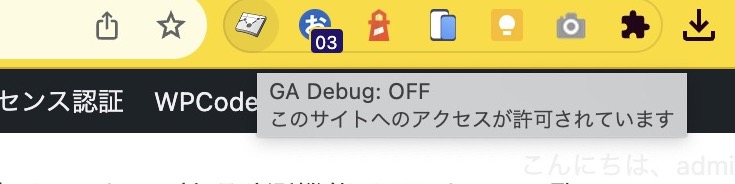 拡張機能アイコンの表示: インストールが完了すると、Chromeの右上に「Google Analytics Debugger」のアイコンが表示されるようになります。