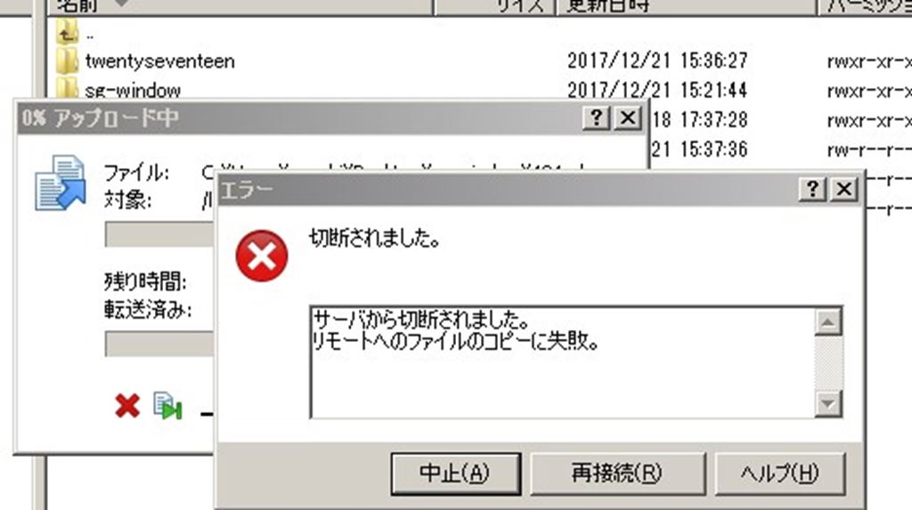 エラーは出たが、zipファイルは何とかアップロードできました。