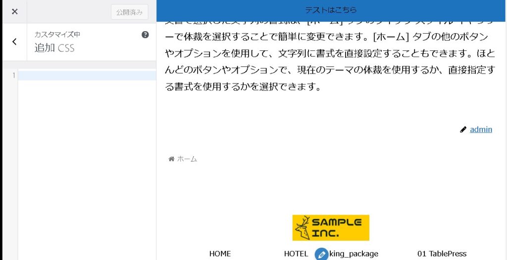 ということで、いつものように、ワードプレスのカスタマイザーにある「追加CSS」機能を使って非表示にしてみます。