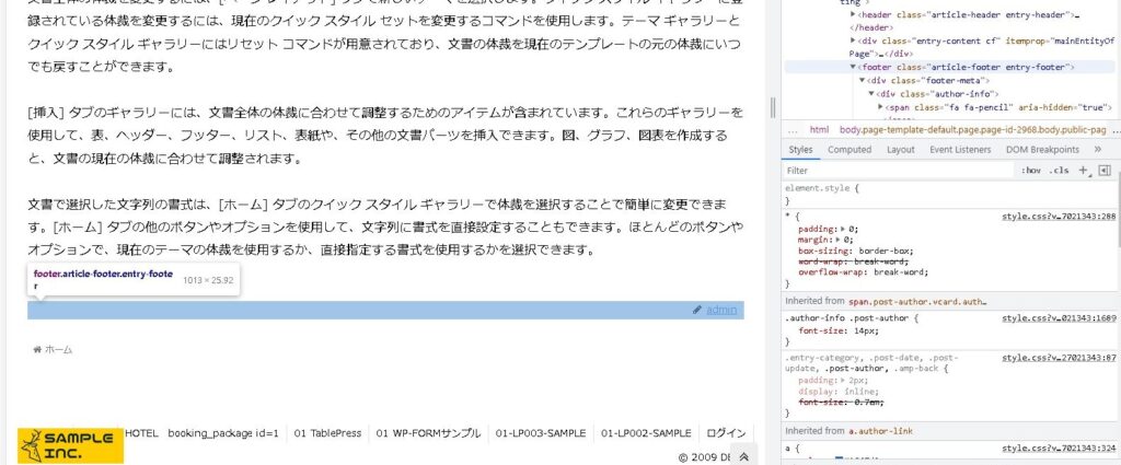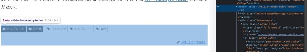 クラス名に「article-footer entry-footer」がありましたので、こちらを使ってみます。