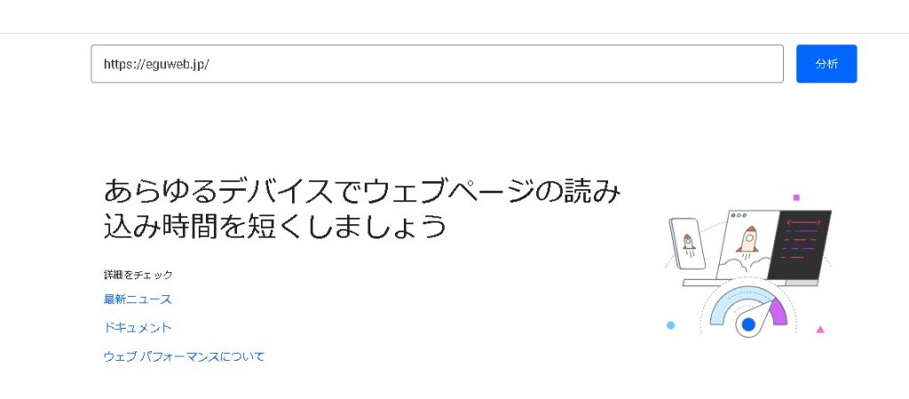 URLを入れて「分析」を押すと、計測を開始してくれます。