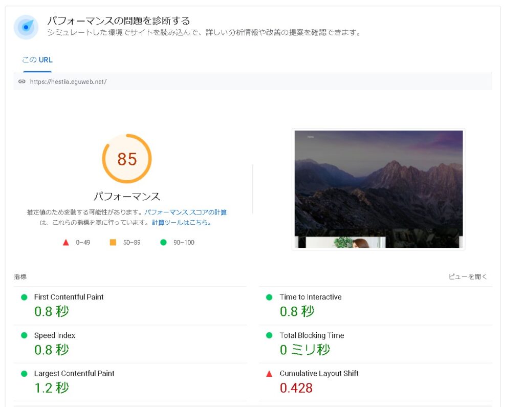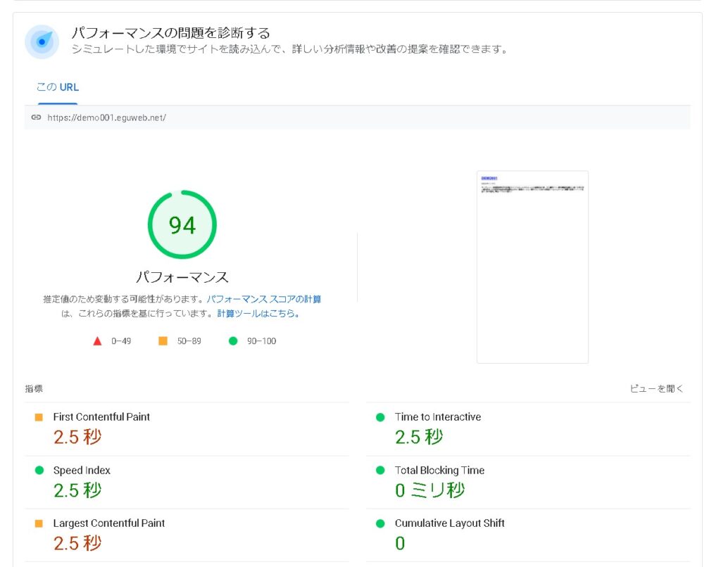 ということで、どの程度サイトの分析でスコアが上がったのか?を試してみます。