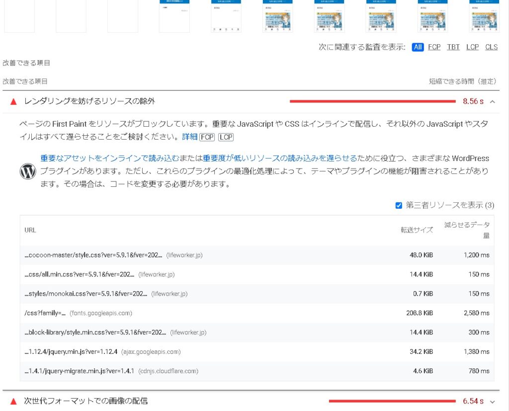 PageSpeed Insightsなどで分析した時に表示される「レンダリングを妨げるリソースの除外」を解決することができます。「WEBサイトのページを表示に時間が掛かっている部分を除外しましょう」という案内です。