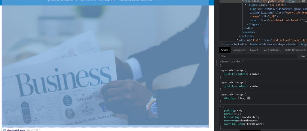 アーカイブページのアイキャッチ画像が大きいので小さくしたい…となった時は、CSSを追加して調整することができます。