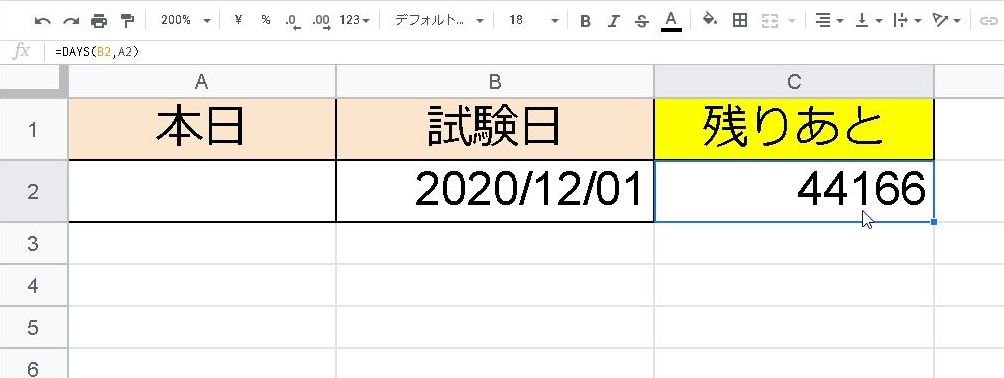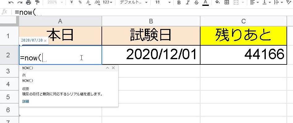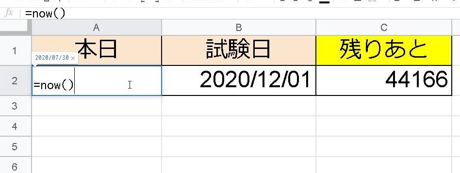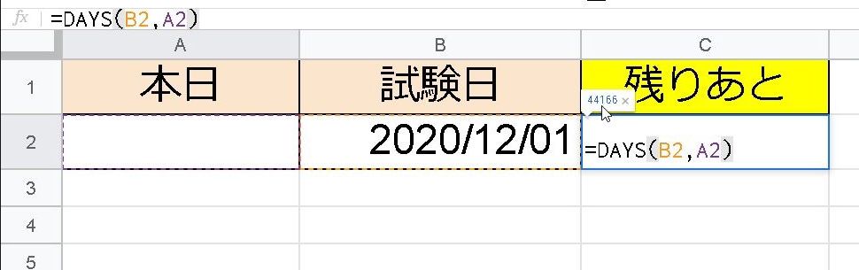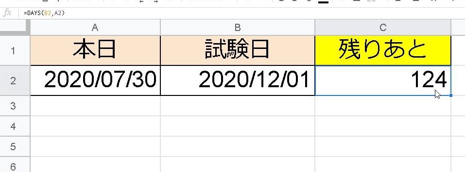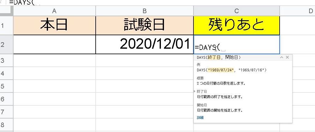 まずは「終了日(今回の場合は試験日)」のセルを指定します。