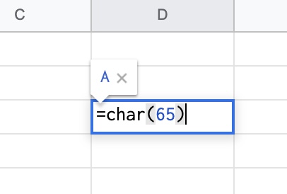 =CHAR(65)