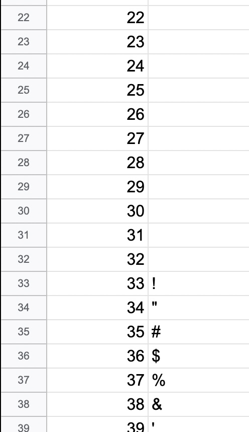 数値が32以下の場合は、文字セットが存在せず(?)返り値は空白になるようです。