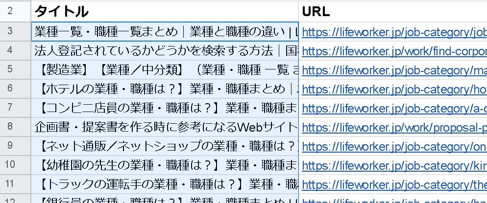 URLの一覧があって、ここから1つずつタイトルを調べて貼り付け…などをしていると時間が掛かって仕方がありません。サイトマップなどからタイトルを抽出するときなどに役に立ちます。