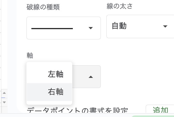 「軸」のドロップダウンメニューから「右軸」を選択します。