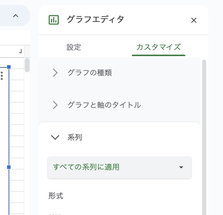 - 「系列」や「凡例」、「グリッド線と目盛線」などを使って、細かい設定を調整します。