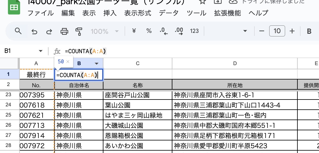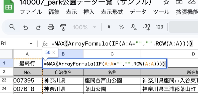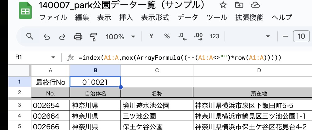 - データの更新や追加に応じて自動的に最終行が更新されます。