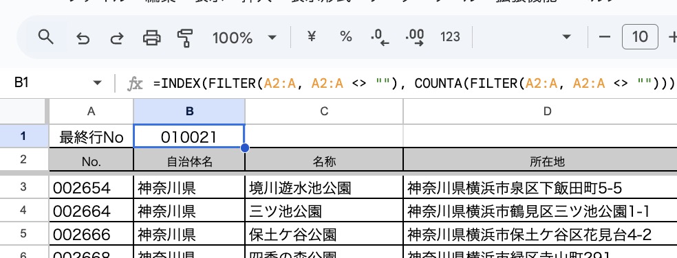 COUNTA関数を使用して最終行を取得できます。シンプルな方法です。