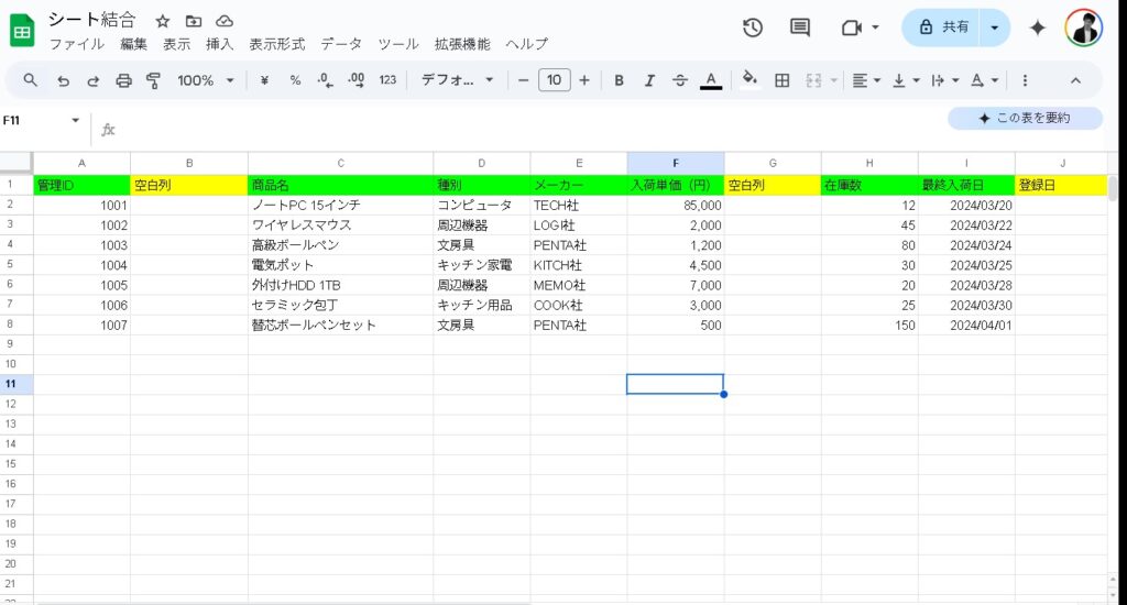 | 空白列を作りたい | ARRAYFORMULA(REPT(“”, ROW()))を使う |