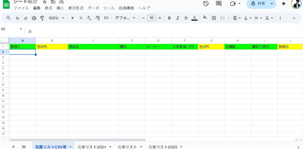| 入荷単価の後 | 在庫数との区切り用 |