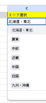 エリア選択のプルダウンを作成(例:C2セル)