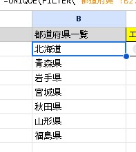 | B2 | 都道府県の絞り込み | =UNIQUE(FILTER(...)) |
