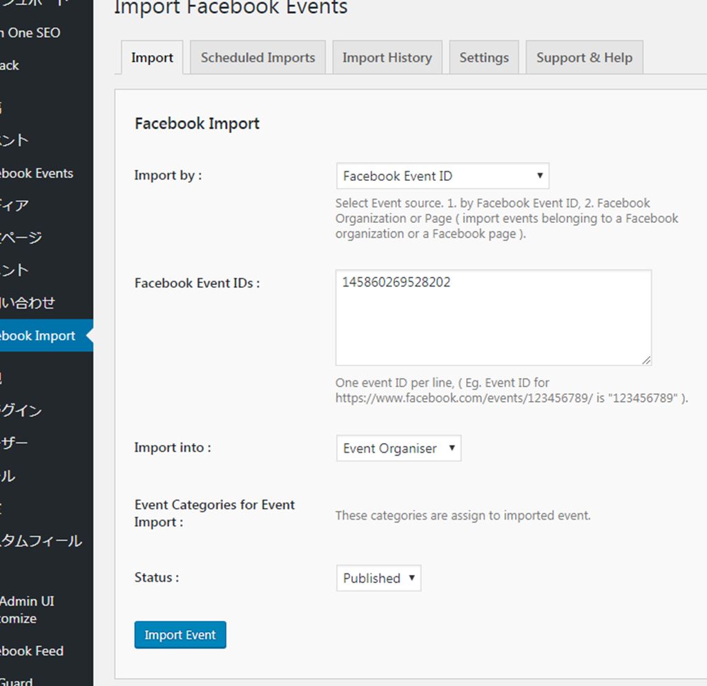 保存したら、インポートしたいFacebookのイベントID