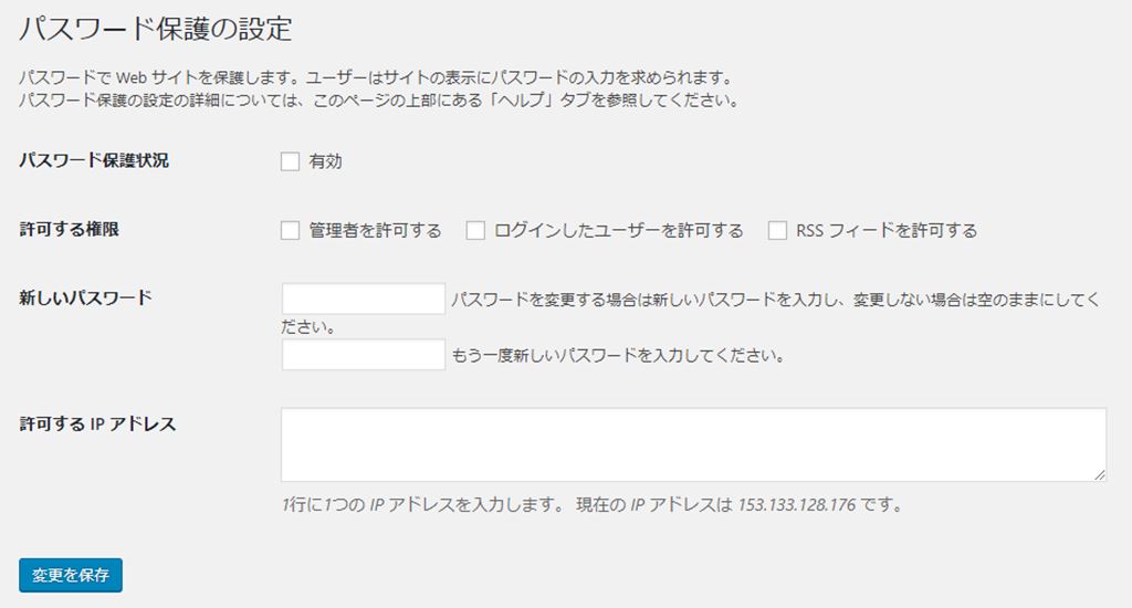 Password Protectedプラグインは、簡単にWEBサイト全体にパスワードを設定することができる便利プラグインです。