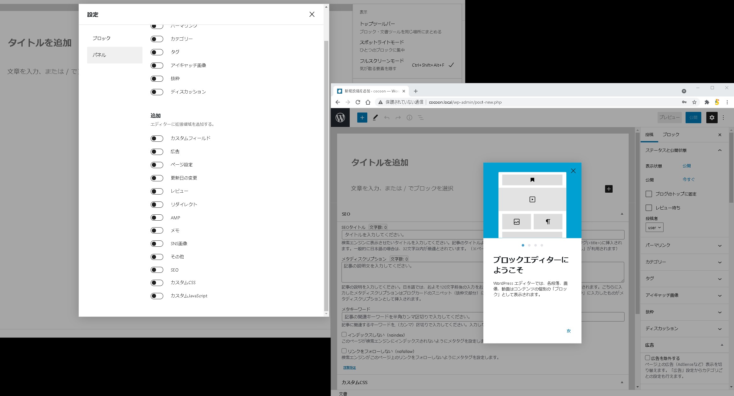 Cocoonの投稿のパネル設定でON・OFF