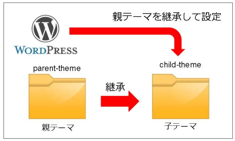 「子テーマ」というのは、親テーマ(もともと設定されているテーマ)の情報を継承して、独自のCSS(デザイン)や追加機能を作ることができる機能です。