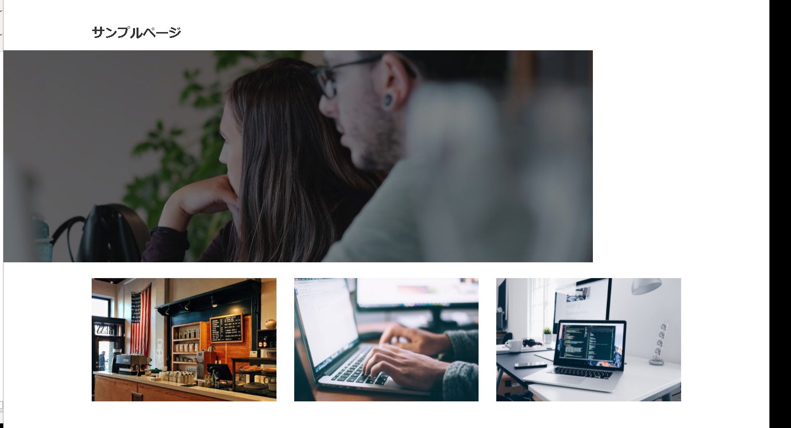前回の復習ですが、前回はこのような感じで、画面幅(ページ幅)いっぱいに画像を広げることに成功しました。