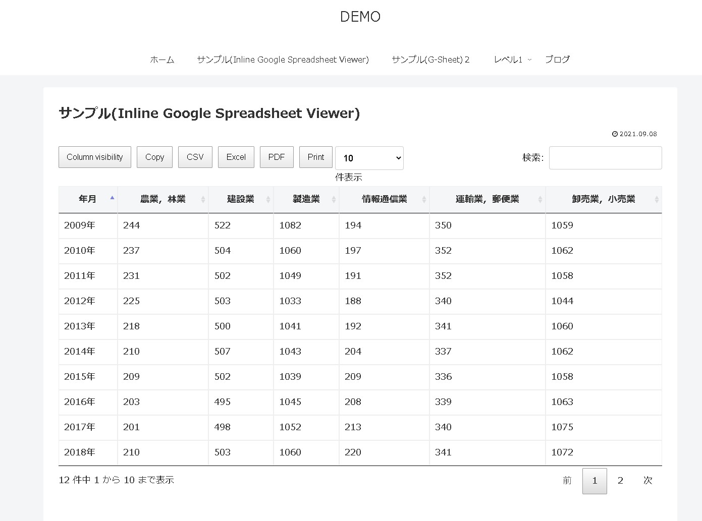 通常のGoogleスプレッドシートの「埋め込み」の場合、iframeで埋め込まれるので表のレイアウトがはみ出したりスクロールバーが出てしまったりとなかなかいい感じにならないですが、こちらのプラグインを使うと、Googleスプレッドシートの表がいい感じに表示されます!
