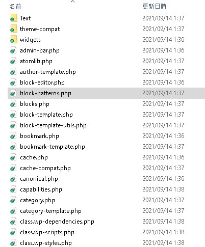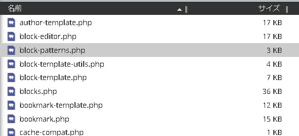 今回の場合は「block-patterns.php」が無いと書いてあったのでblock-patterns.phpファイルをアップロードします。