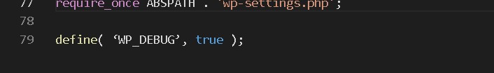 wp-config.phpの80行目あたりに下記のコードを追記します。もしくは、すでにある場合は、falseの部分をtrueに書き換えます。