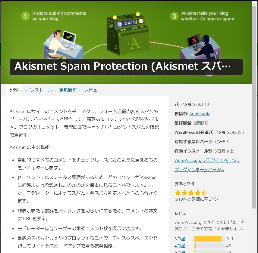 このようなときに役立つプラグインが「Akismet(アキスメット)」です。