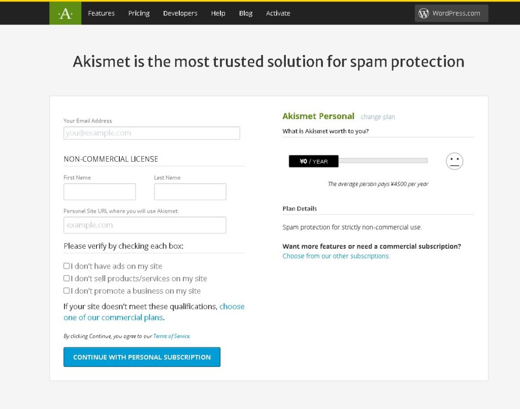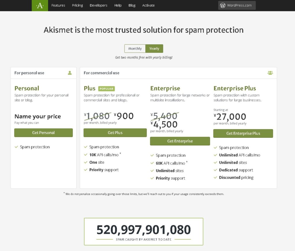 Akismet の有料プラン?