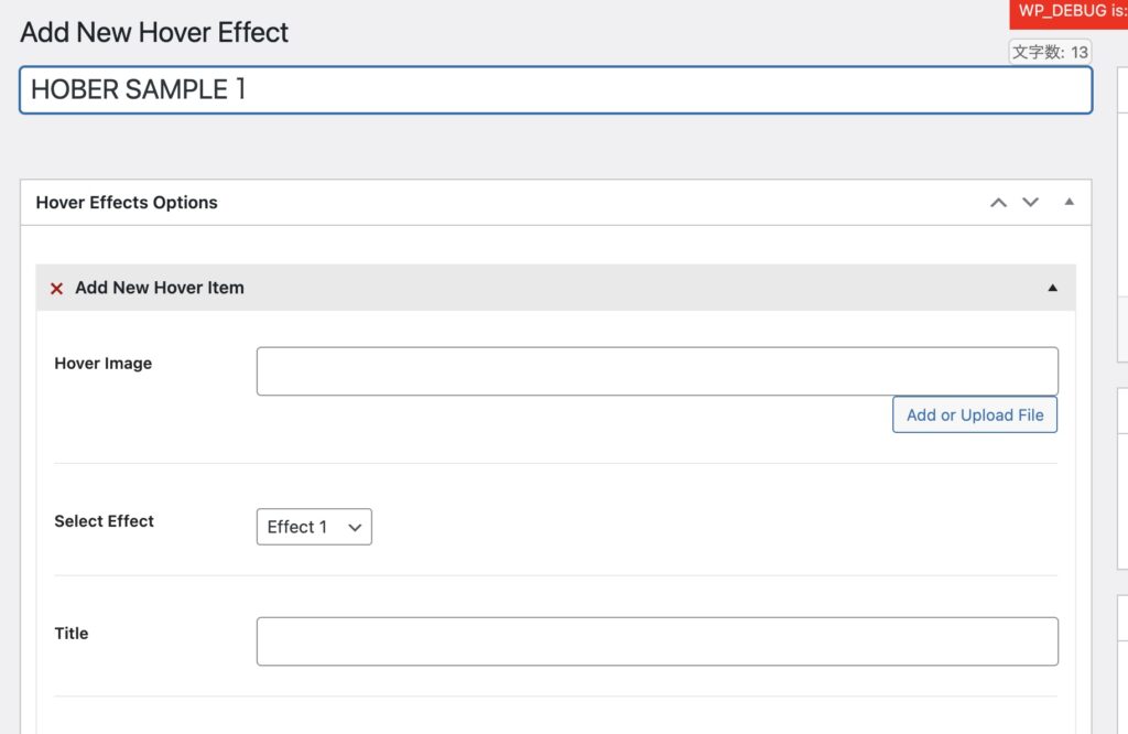 Hover Effectsしたい画像を設定します。