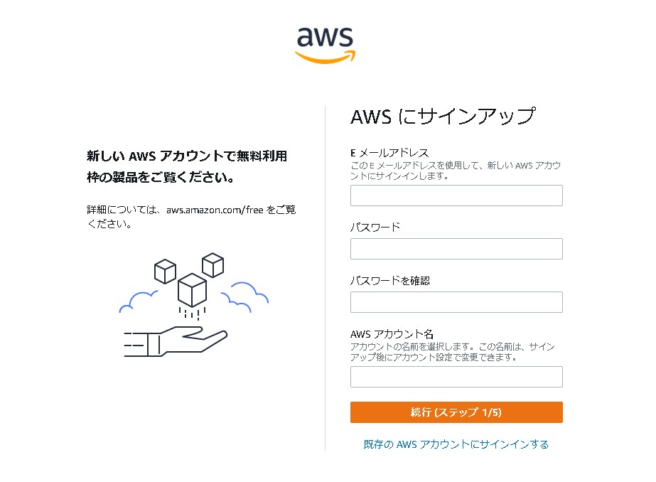 「Lightsailを無料で使用開始」から使います。アカウントがまだの方は「今すぐ無料でサインアップ」から新しいアカウントを作成します。