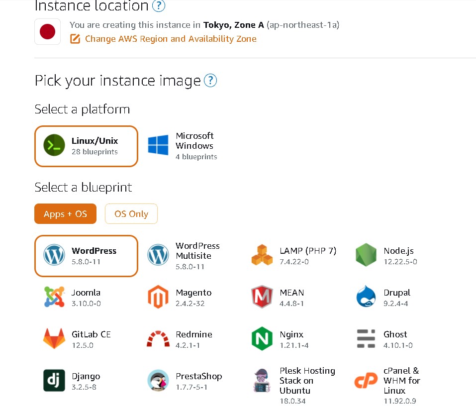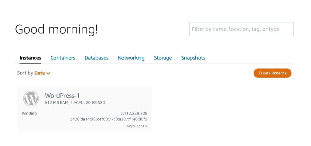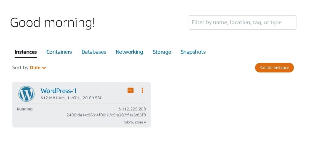 Amazon lightsail でインスタンスを作成する