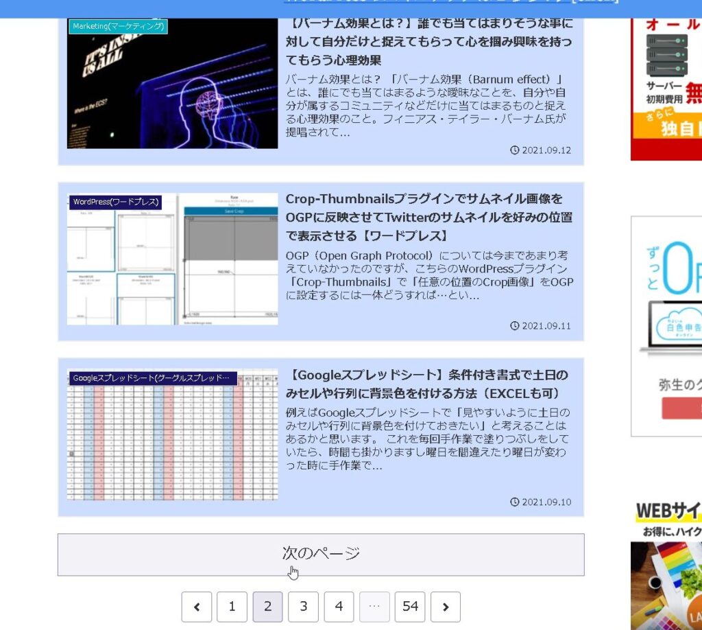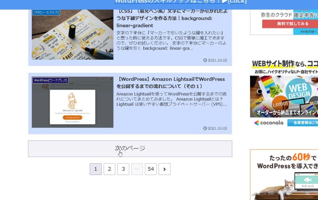 「次のページ」や「ページネーション」で、過去の記事を遡ることが出来ますが、数が多いとユーザーさんが閲覧するのも大変です。そんなときにはコンテンツを無限スクロールさせるという方法もありかと思います。