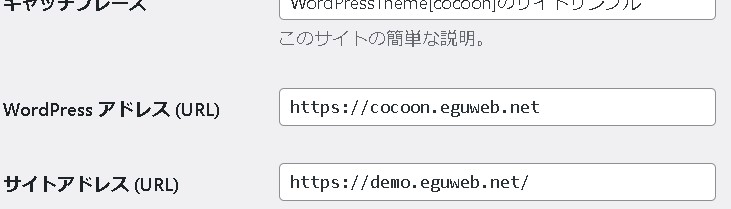 そもそもですが、例えばこのサイトアドレス (URL)が元々「https://cocoon.eguweb.net/」だったとして、これが「https://demo.eguweb.net/」となった場合。