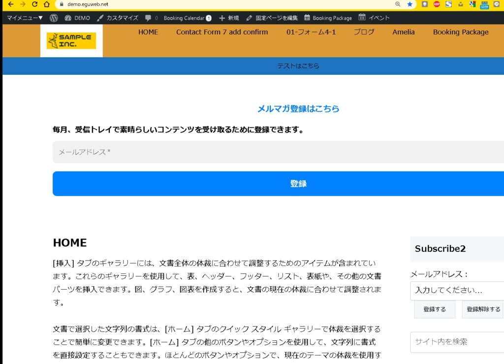 この時、サイトのTOPページを開くと「https://demo.eguweb.net/」が開きます。