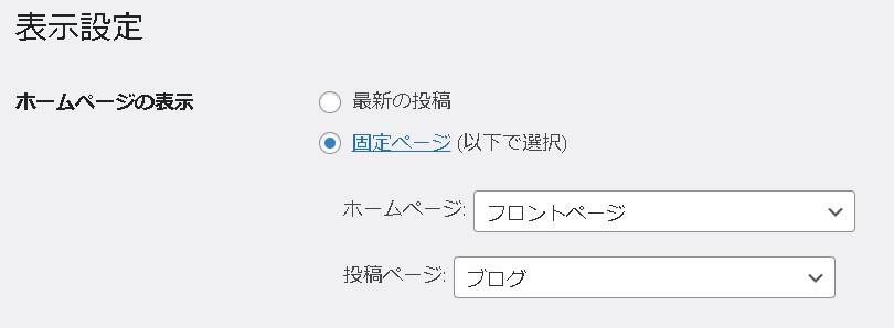 投稿ページに「固定ページ:ブログ」が設定できました。