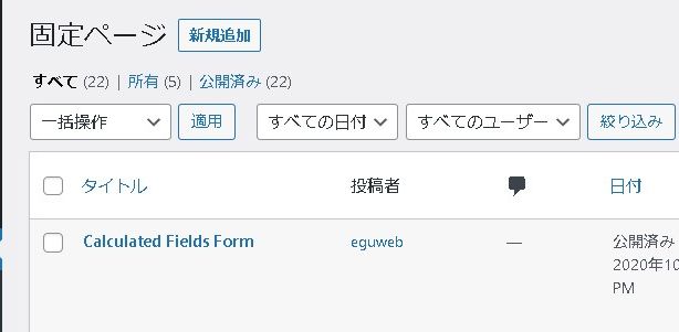 まずは、固定ページの「新規追加」から、新しい固定ページを作成します。