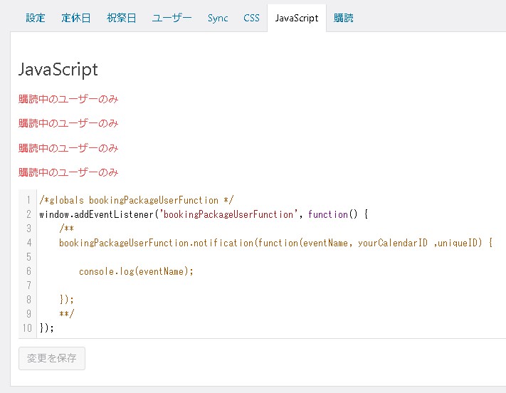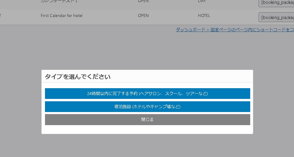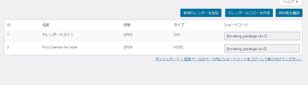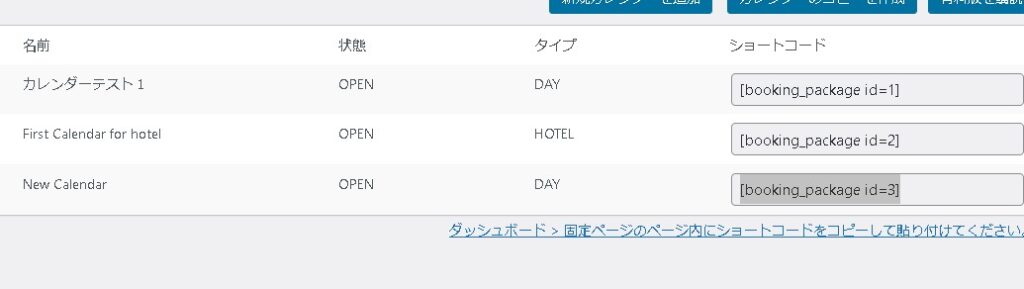 あとは、予約カレンダーを表示させたい場所に発行されたショートコードを設定すれば表示が可能です。