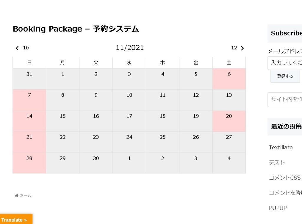 「Booking Package – 予約システム」プラグインを使うと、このような感じで簡単に予約システムをWordPressに導入することができるようになります。