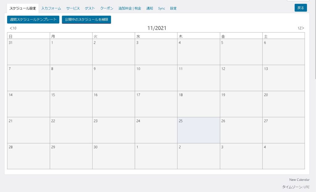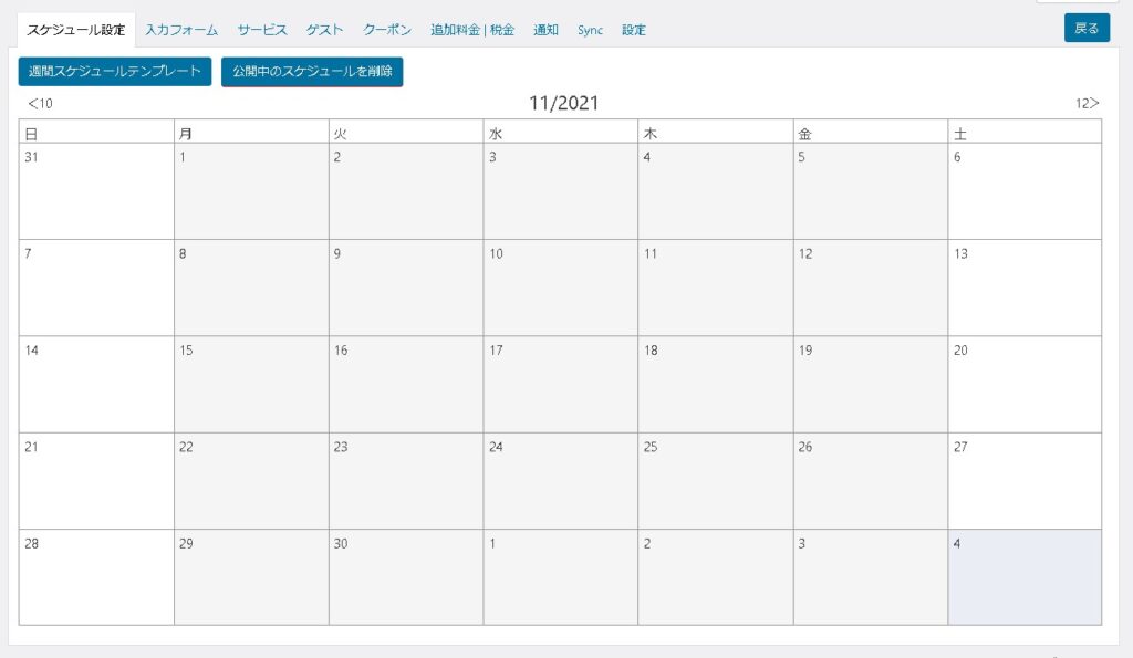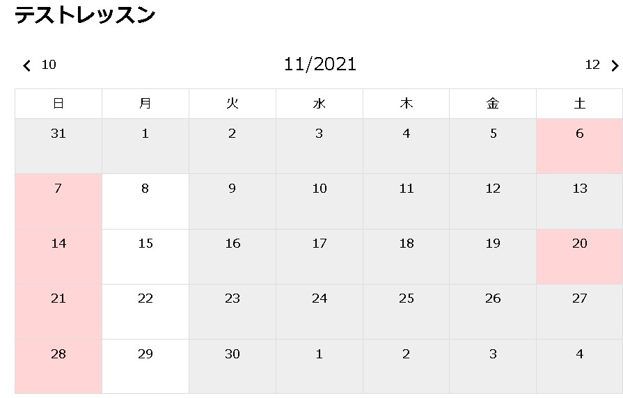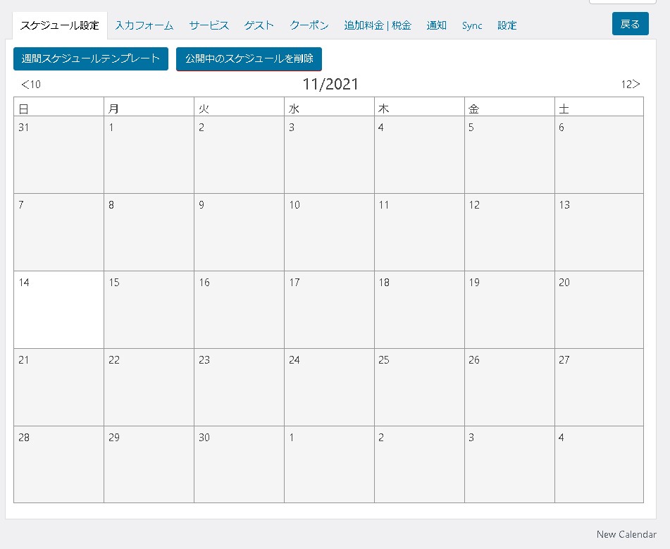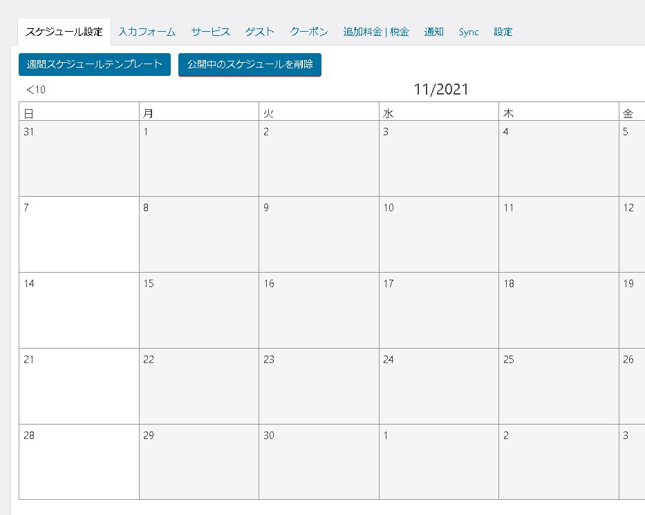 ということで、公開されていたページには、カレンダーは表示されましたが、どの日にも予約が押せない状態になっていましたので、予約が受け付けられるように設定を追加します。
